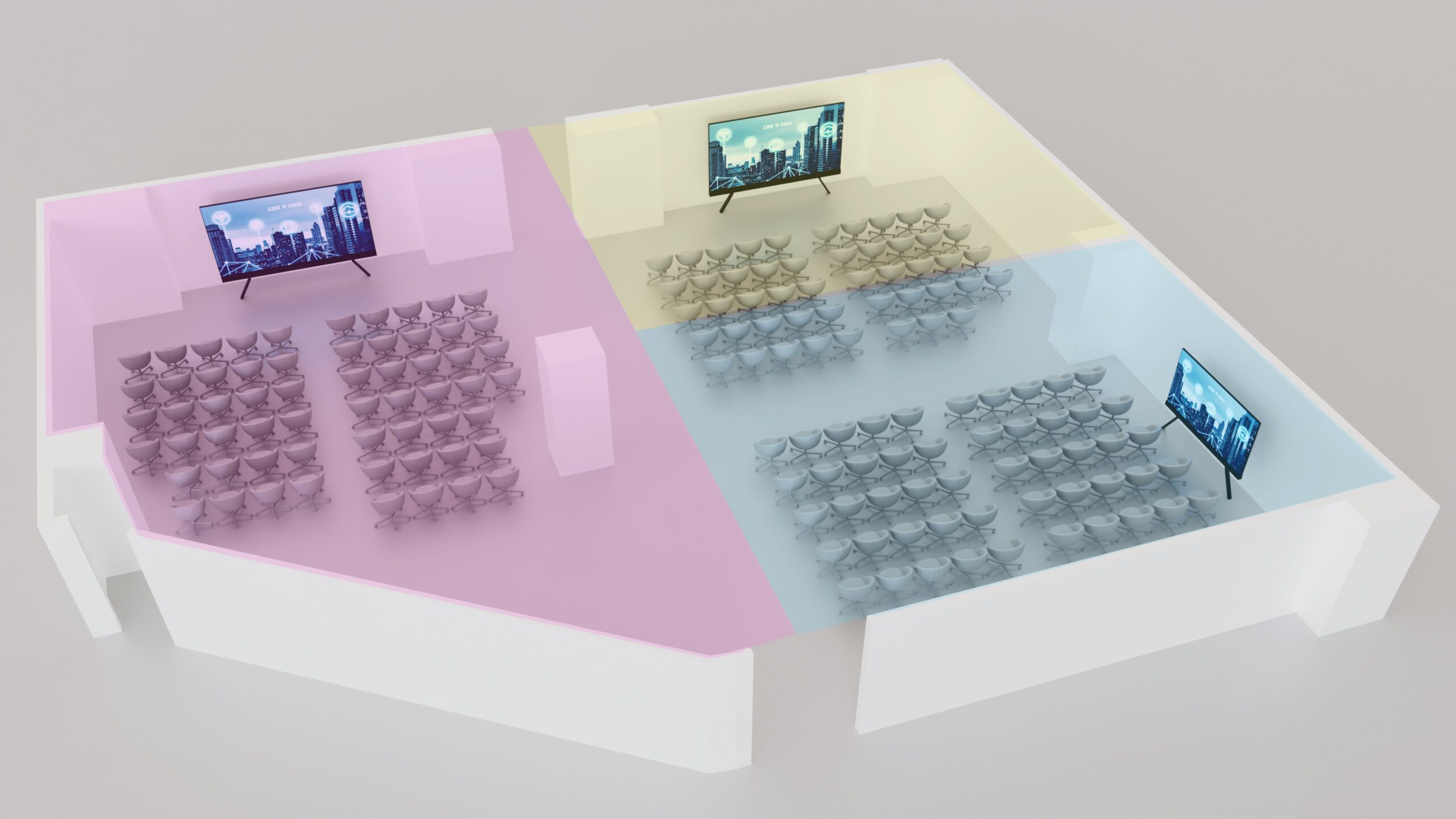 The client envisioned a Town Hall environment that could seamlessly transition between multiple operational formats while maintaining consistent audiovisual quality.